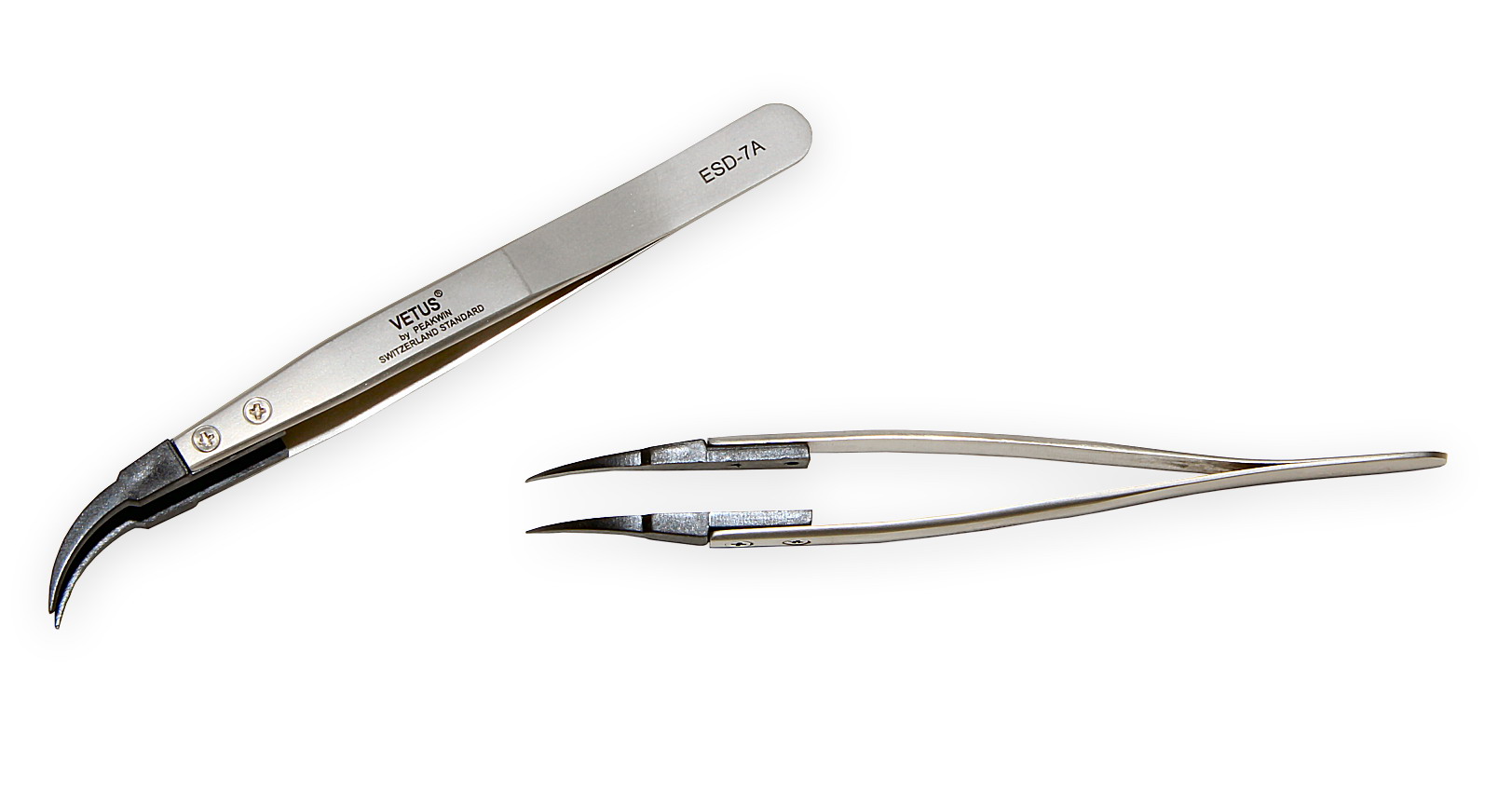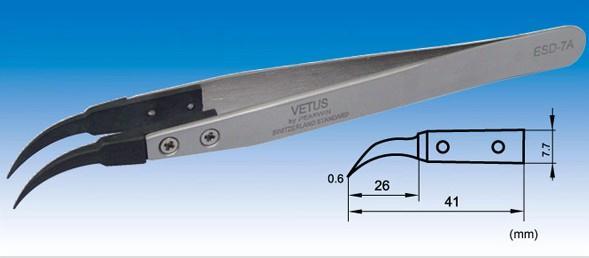 Antystatyczna pęseta ze stali nierdzewnej VETUS ESD-7A z końcówką z PPS