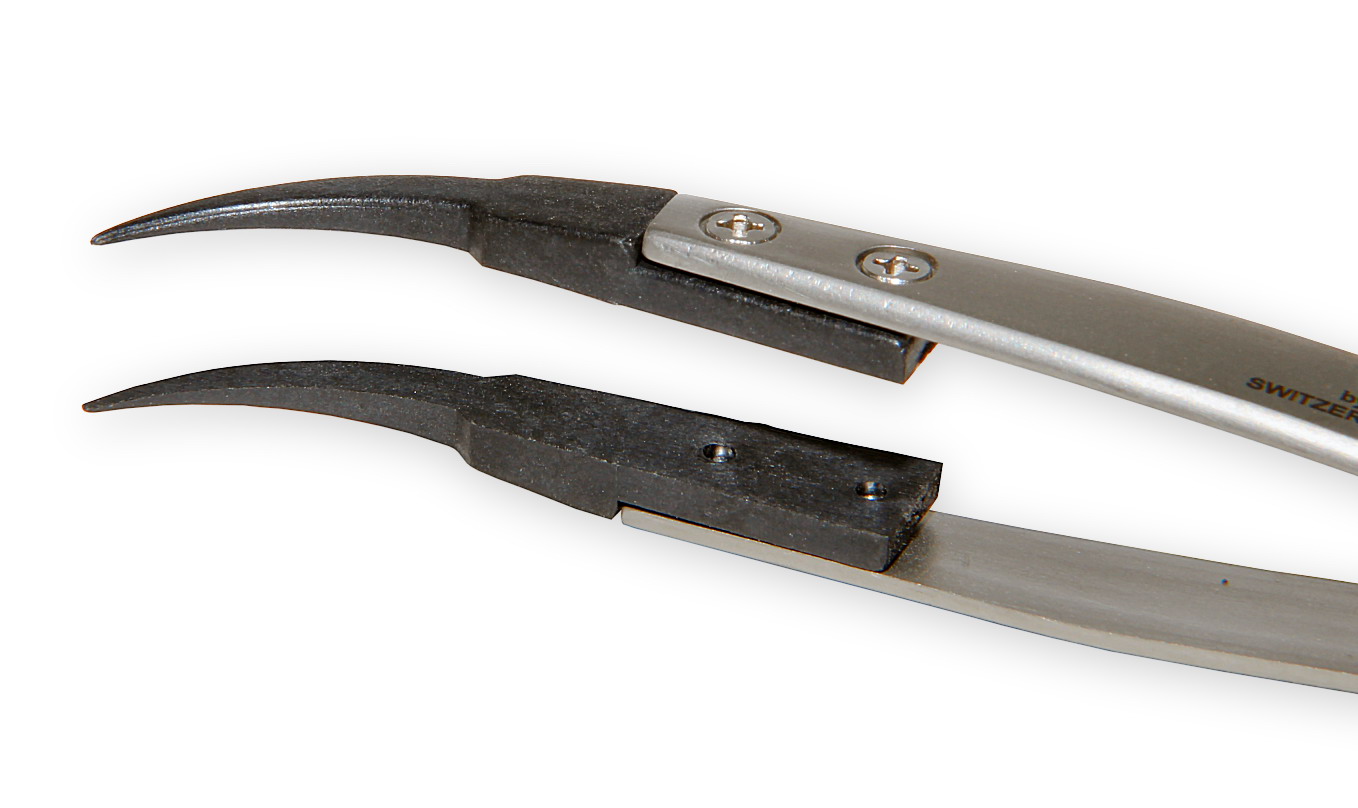 Pęseta ze stali nierdzewnej z przykręcanymi wkładkami z polisiarczku fenylenu (PPS). Materiał ten zapewnia pęsetom unikalne właściwości, w tym absolutną odporność na kwasy, odporność na temperatury do 170°C bez nagrzewania metalowej części. Materiał ten jest również antymagnetyczny, niekorozyjny i antystatyczny. Metalowa część pęsety wykonana jest ze stali nierdzewnej 302.