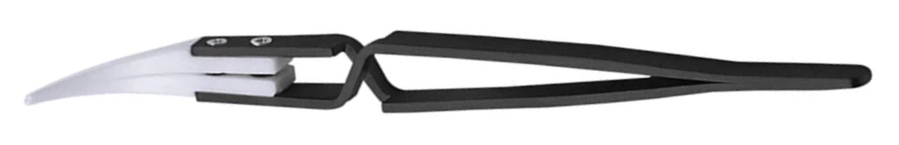 Pęseta samoblokująca wykonana ze stali nierdzewnej z zaokrąglonymi, odpornymi na wysokie temperatury ceramicznymi końcówkami.