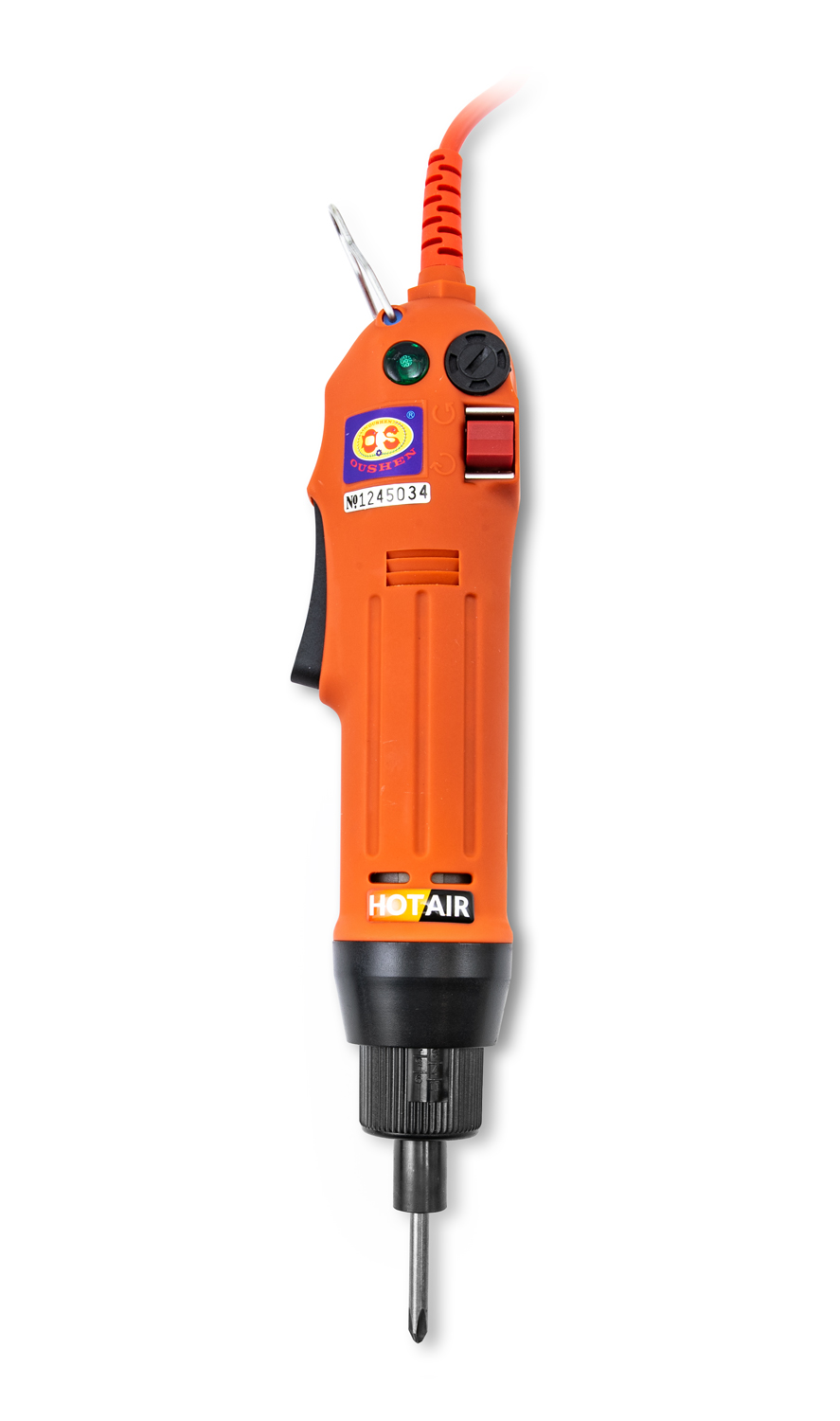 wysokiej jakości elektryczna wkrętarka dynamometryczna KOPO - 622 z zakresem momentu obrotowego 0,2-2,5Nm, prędkością obrotową do 900 obr/min, głowica zaciskowa wkrętarki przeznaczona jest do końcówek sześciokątnych 6,35 HEX. Siła momentu obrotowego regulowana jest za pomocą obrotowego sprzęgła sprężynowego. Wyraźnie słyszalne i wyczuwalne przeskakiwanie po osiągnięciu ustawionego momentu dokręcania.przełącznik silnika zintegrowany z rękojeścią dla lepszej ergonomii pracy. Przełącznik kołyskowy na korpusie urządzenia umożliwia zmianę kierunku obrotów. wkrętarka zasilana jest z sieci 230V/50Hz za pomocą przewodu zasilającego o długości 1,75 m. Oczko na korpusie wkrętarki do mocowania do wyważarki. Korpus urządzenia pokryty jest powłoką antypoślizgową dla większego komfortu podczas pracy. Wkrętak dynamometryczny służy do precyzyjnego i zawsze takiego samego dokręcania śrub, poprzez obrót głowicy wybiera się siłę momentu obrotowego, która pozostaje na stałe ustawiona zgodnie z potrzebami, przeznaczony jest do produkcji przemysłowej i taśmowej lub centrów serwisowych. Dobra ergonomia, konstrukcja antywibracyjna, mocny silnik elektryczny i możliwość zamontowania wkrętarki na wyważarce sprawiają, że praca operatora jest bardzo łatwa podczas serwisowania lub produkcji sprzętu elektronicznego lub mechanicznego, od przemysłu motoryzacyjnego po technologię IT. Precyzyjnie regulowany moment obrotowy zapewnia równomierne dokręcenie wszystkich śrub, a balanser odciąża ręce i plecy operatora klucza dynamometrycznego. Balanser nie wchodzi w skład zestawu, można go nabyć TUTAJ.