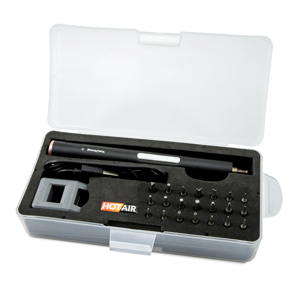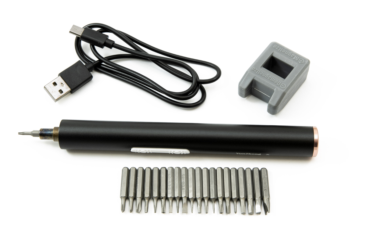 Oprócz wk rętakaw zestawie znajduje się zestaw precyzyjnych bitów 4mm (56szt) do serwisowania telefonów komórkowych, tabletów, aparatów fotograficznych, nawigacji, kamer, zegarków i innej drobnej elektroniki, magnetyzer/demagnetyzer do śrub, podstawka pod mikrowkrętak, kabel micro USB do ładowania, frez, słoik na wkrętaki, etui na wkrętaki z magnetycznym zamknięciem oraz podkładka magnetyczna.
