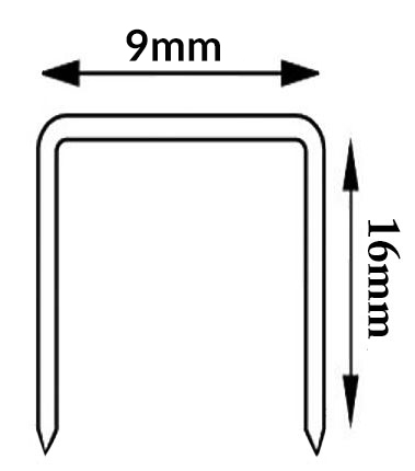 Do zszywacza można ładować zszywki o stałej szerokości 9 mm, ale o różnych wysokościach 6-16 mm. Grubość zszywek 0,65-0,7 mm.
