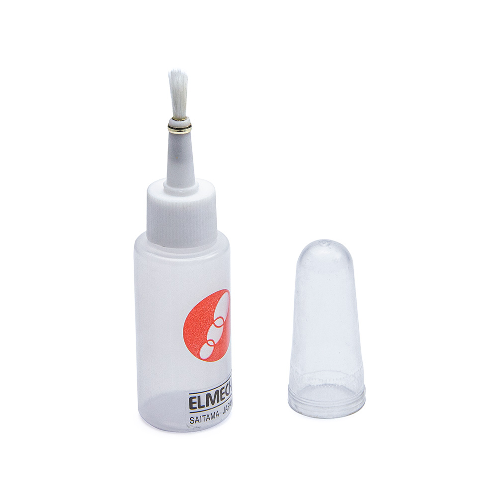 Plastikowa butelka 50 ml z zakrętką i miękkim pędzelkiem. Butelka z delikatnym pędzelkiem nadaje się do aplikacji środków czyszczących (np. alkoholu izopropylowego), płynów lutowniczych i topników. Praktyczna gumowa nasadka zapobiega parowaniu chemikaliów do otoczenia. Butelka jest wykonana z miękkiego, przezroczystego plastiku, co ułatwia kontrolę poziomu, butelkę można ścisnąć podczas nakładania mniej płynnych topników. Pędzelek jest wykonany z cienkiego włókna syntetycznego i ma wysokość 17 mm. Butelka jest odporna na wszystkie powszechnie stosowane chemikalia, ale przed użyciem z silniejszymi rozpuszczalnikami warto sprawdzić, czy plastikowa folia nie przywiera.