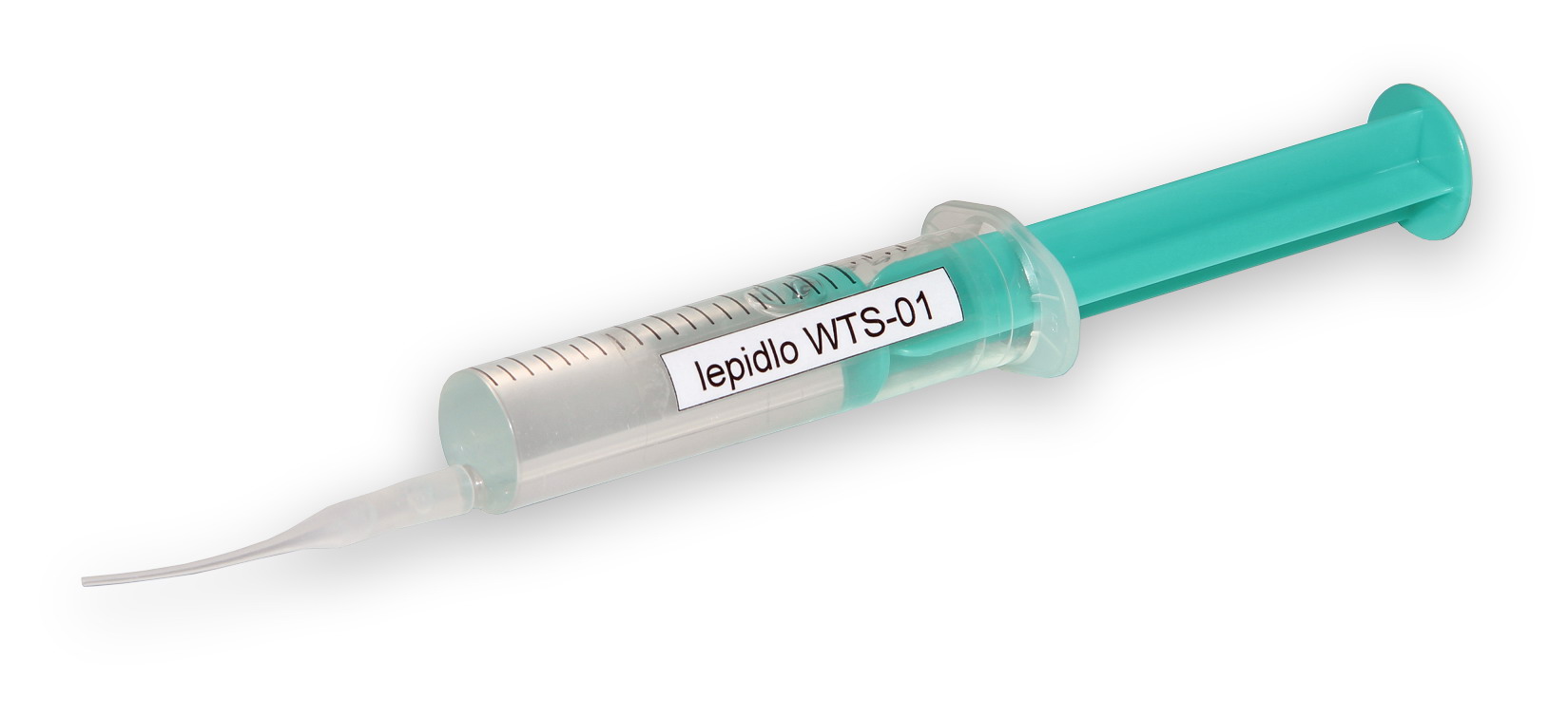 Zastosowanie klejów wtórnych na bazie cyjanoakrylanów wydaje się być całkowicie błędne, ponieważ zawodzą one w tym zastosowaniu ze względu na nadmierną twardość i niską przyczepność. kleje wtórne nie zapewniają również wystarczającego czasu na precyzyjne wykonanie operacji i tworzą białe ślady na krawędziach klejonego digitizera podczas utwardzania. Klej WTS-001 nie cierpi na żadną z tych przypadłości. Jest całkowicie przezroczysty i nie zmienia koloru ani nie plami otoczenia podczas schnięcia. Chociaż wymaga około 6 godzin do pełnego utwardzenia, daje możliwość wygodnej obsługi już osadzonego dotyku i jego precyzyjnego osadzenia. W przeciwieństwie do drugiego kleju, nie wytrawia plastiku i można go bez problemu zetrzeć tam, gdzie został przypadkowo nałożony. Do momentu związania kleju (1-2 godziny), klejone elementy muszą być mechanicznie dociśnięte. Klejenie nie odbywa się punktowo, ale poprzez nałożenie niewielkiej ilości kleju na cały klejony obszar. Dostępny jest aplikator igłowy. Objętość płynnego kleju wynosi 10 ml.