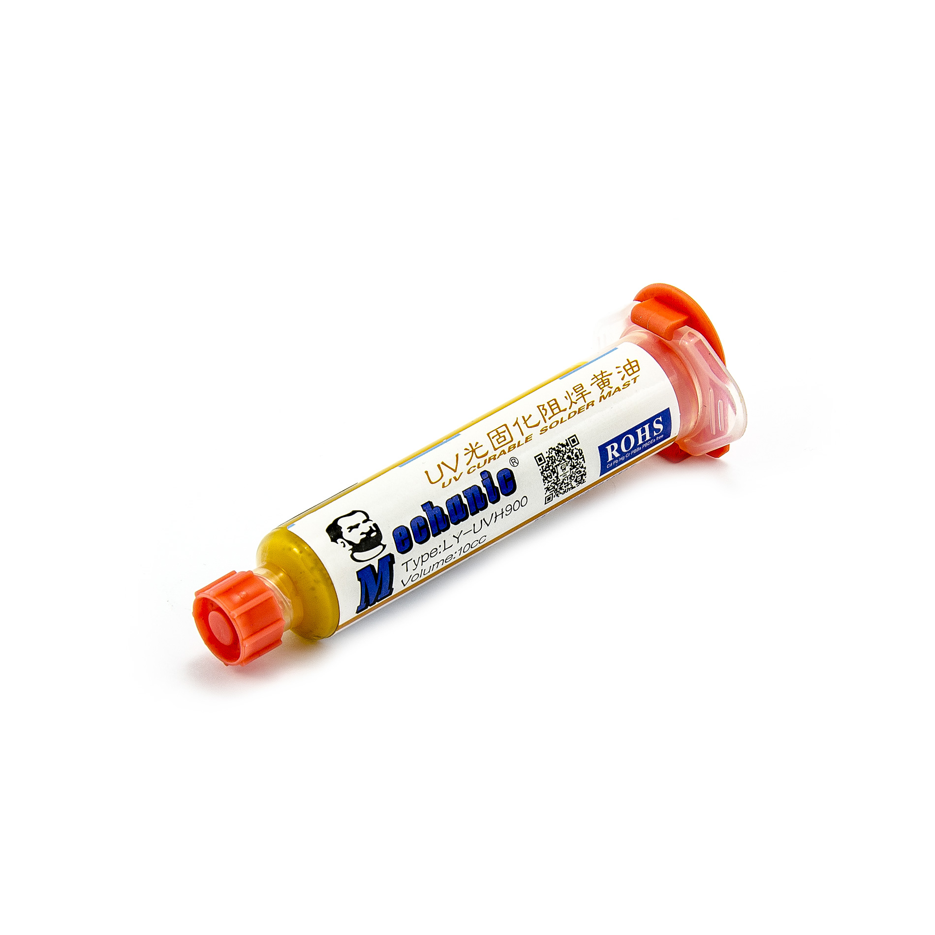 Żółty lakier UV do płytek drukowanych do tworzenia maski nielutowniczej za pomocą ścieżki fotograficznej. Lakier jest nakładany na całą powierzchnię PCB, a po wyschnięciu światło UV jest prześwietlane przez folię maski, a następnie nieutwardzone (nieoświetlone) obszary są rozpuszczane w syntetycznym rozpuszczalniku. Za pomocą drukarki laserowej można bez problemu przygotować folie do naświetlania oraz przezroczystą folię, na której drukowany jest obraz nielutowanej maski.