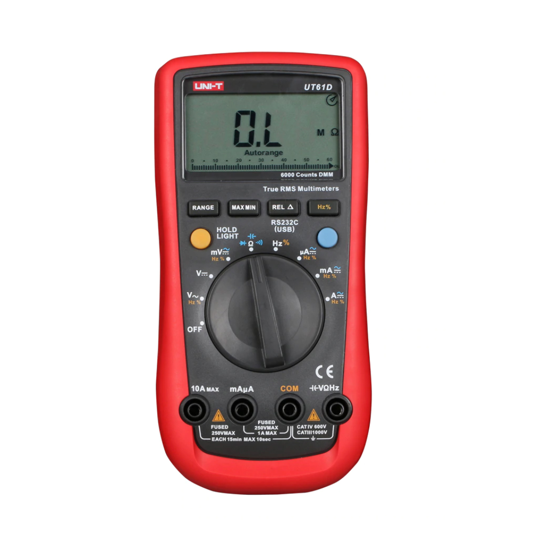 Profesjonalny multimetr UNI-T z wyświetlaczem LCD służy do pomiaru wszystkich typowych wielkości (napięcie, prąd, rezystancja). Niektóre modele są wyposażone w szereg funkcji, takich jak pojemność, częstotliwość, temperatura, T-RMS, latarka, pomiar tranzystorów itp. w zależności od typu modelu (patrz lista funkcji poniżej). Multimetry są najczęściej używanymi przyrządami pomiarowymi w pomiarach i naprawach urządzeń elektrycznych, sprzętu biurowego, dystrybucji energii w budynkach, okablowania samochodowego lub w produkcji i hobbystycznym tworzeniu różnych projektów i produktów elektrycznych. Multimetry są wyposażone w gniazda, które są podłączone do przewodów pomiarowych z końcówkami, za pomocą których następnie przeprowadzany jest pomiar, wszystkie zmierzone wartości są wyświetlane na wyświetlaczu LCD na korpusie przyrządu. Pokrętło na środku multimetru służy do ustawiania funkcji lub zmiany zakresu pomiarowego. Przyrząd może być trzymany w dłoni, umieszczony na stole lub postawiony za pomocą zawiasowej stopki na korpusie przyrządu. Multimetry są gumowane w celu zwiększenia trwałości i żywotności przyrządu.