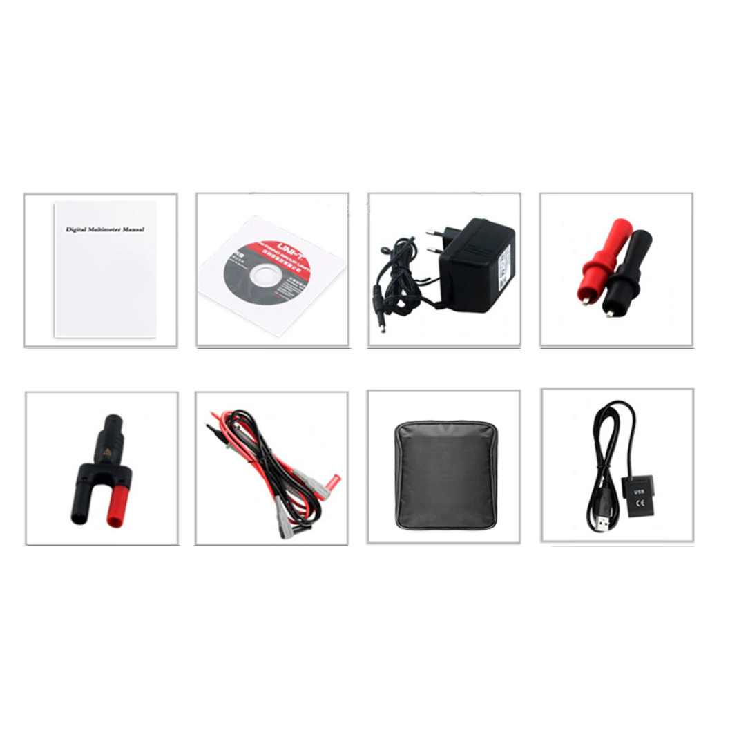 Zawartość pakietu: UNIT-UT81C, końcówki testowe, kabel USB, etui z zasilaczem