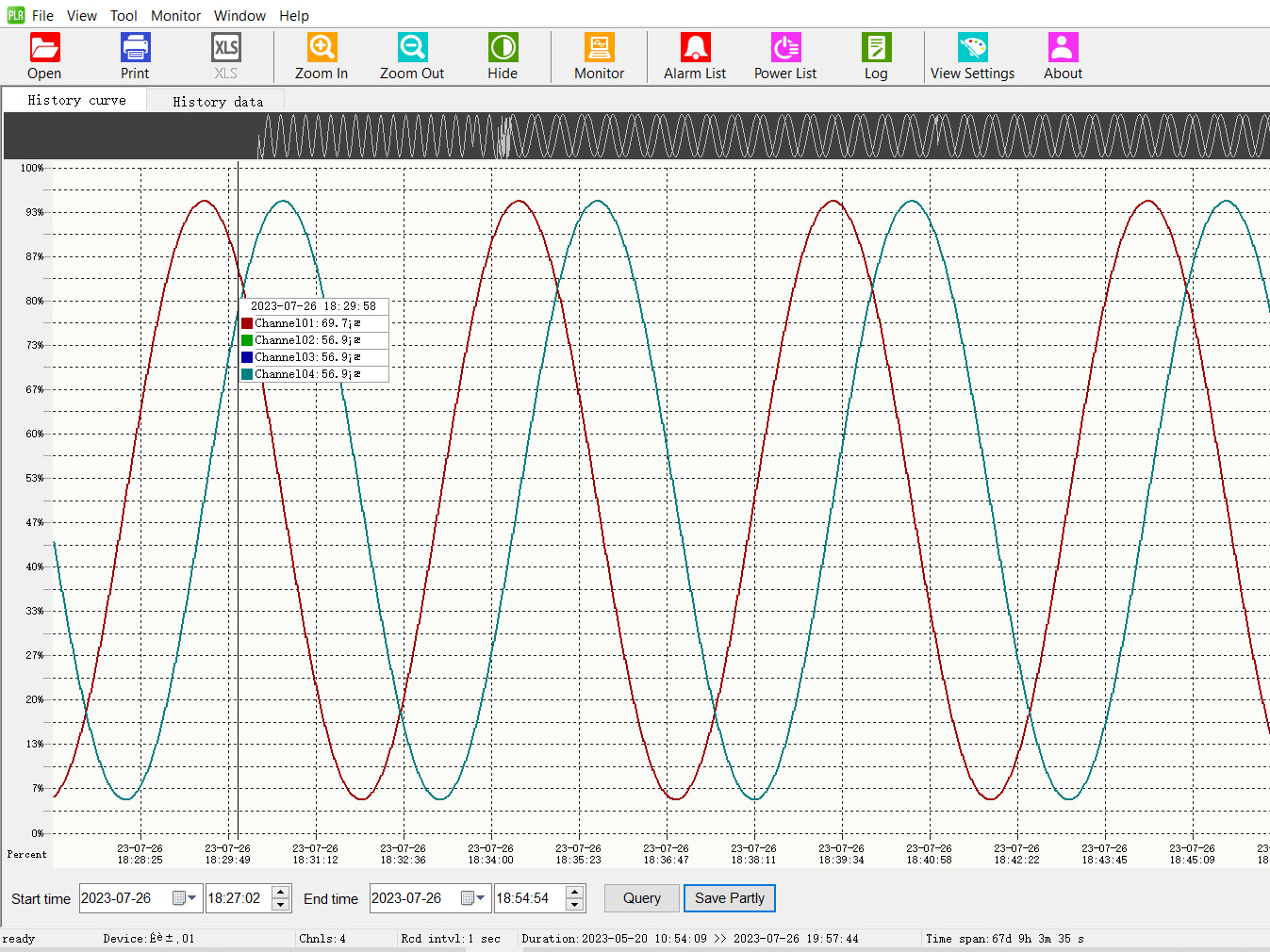 Wyświetlanie zapisu, możliwość podglądu krzywych czasowych