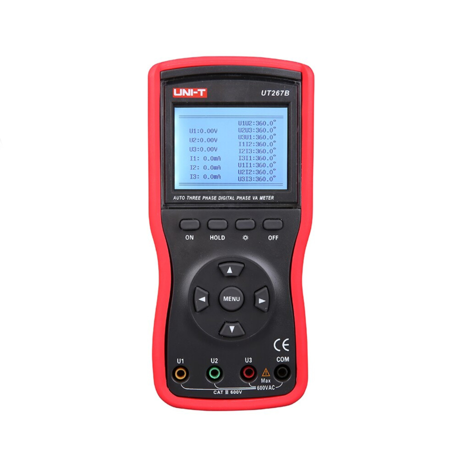 UNI-T UT267B to profesjonalny i bardzo dokładny cyfrowy woltomierz fazowy do pomiaru układów trójfazowych, transformatorów i silników w przemyśle ciężkim.