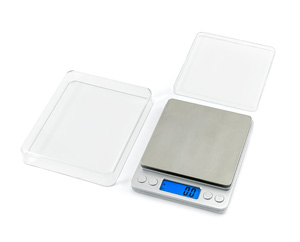 Waga posiada dwie szalki, jedna o wielkości powierzchni ważenia, a druga o wielkości całej wagi, służąca również jako pokrywa, gdy nie jest używana, podświetlany na niebiesko wyświetlacz LCD, lepsza czytelność w każdych warunkach oświetleniowych z pięcioma miejscami po przecinku. Waga posiada możliwość przełączania jednostek miary, waga może być ważona w jednostkach g, gn, ct, oz.