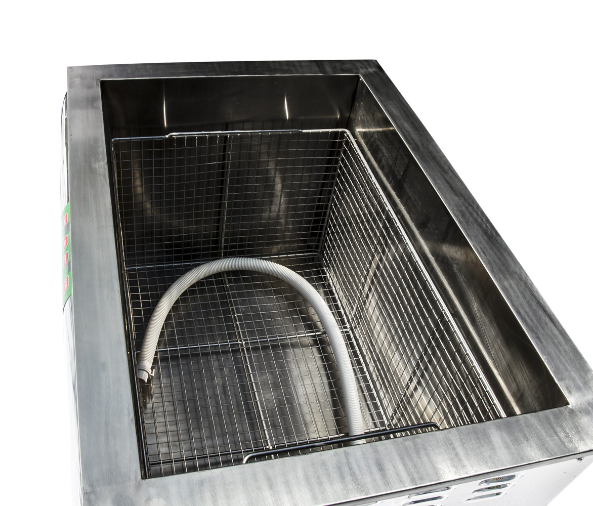 Duża myjka ultradźwiękowa tego typu pozwoli na łatwe czyszczenie większych i strukturalnych bloków. Łatwe czyszczenie części silnika, skrzyni biegów, gaźników lub całych bloków silnika w wannie. Ciężkie przedmioty, takie jak bloki silnika, muszą być jednak zawieszone i tylko zanurzone - nie można ich położyć na dnie wanny. Myjka nie jest przeznaczona do ciężkich przedmiotów.