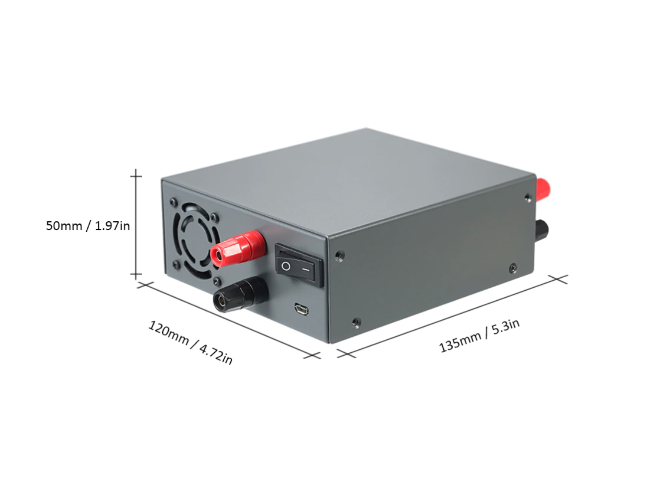 Zasilacz wymaga własnego zasilania DC w zakresie 6-60V/15A, napięcie wejściowe musi być zawsze co najmniej 1,1 razy wyższe niż wymagane napięcie wyjściowe. Jeśli potrzebujemy regulować napięcie wyjściowe, na przykład 12V, musimy podłączyć do wejścia zasilacz o napięciu co najmniej 13,2VDC, ale nie więcej niż 60VDC.