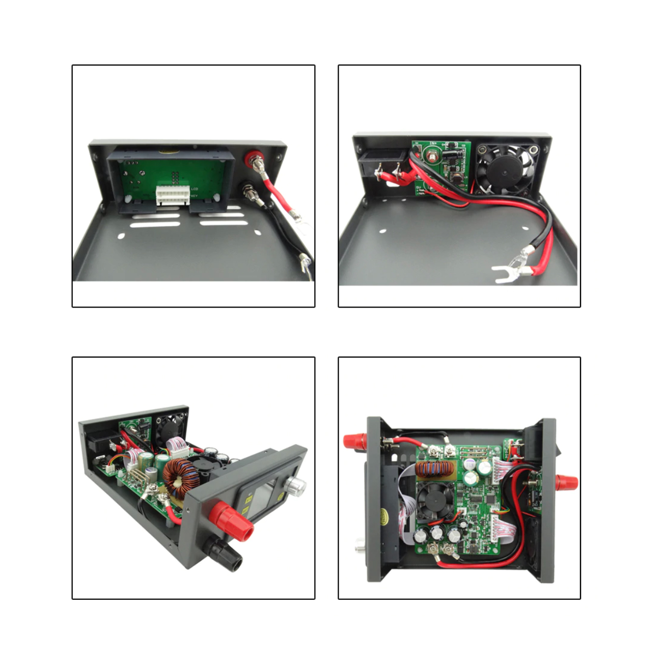 Cały moduł składa się z dwóch części: wyświetlacza z elementami sterującymi oraz części zasilającej z aktywnym chłodzeniem, obie części połączone są ze sobą wielożyłowym kablem o długości 20cm