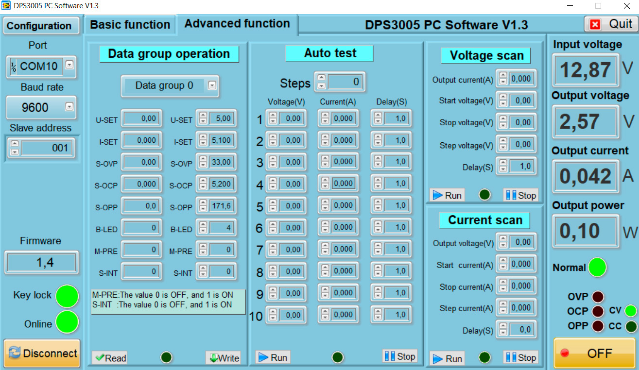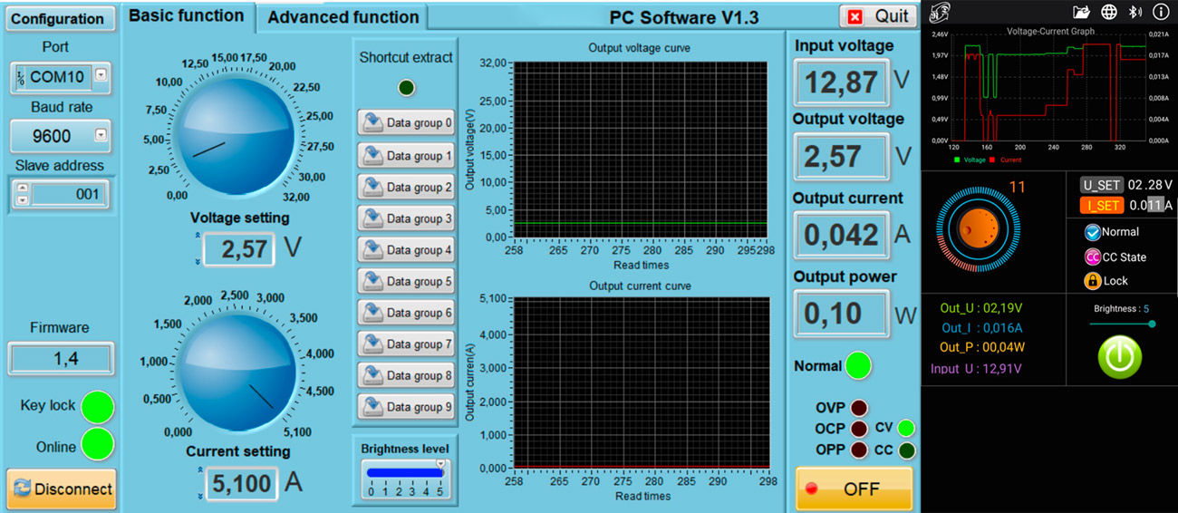 Wspomniane funkcje są szczególnie przydatne w rozwoju i odzyskiwaniu urządzeń DIY i elektronicznych, formowaniu kondensatorów, w automatyzacji, ładowaniu, testowaniu itp. Oprogramowanie jest w języku angielskim, jest bardzo proste i łatwe w użyciu, obsługuje nawet najnowszy system Windows 10. Oprogramowanie dla urządzeń z systemem Android oferuje podstawowe funkcje: sterowanie wyjściami i rejestrowanie charakterystyk VA ze znacznikiem czasu w tabelach .xls (Excel).