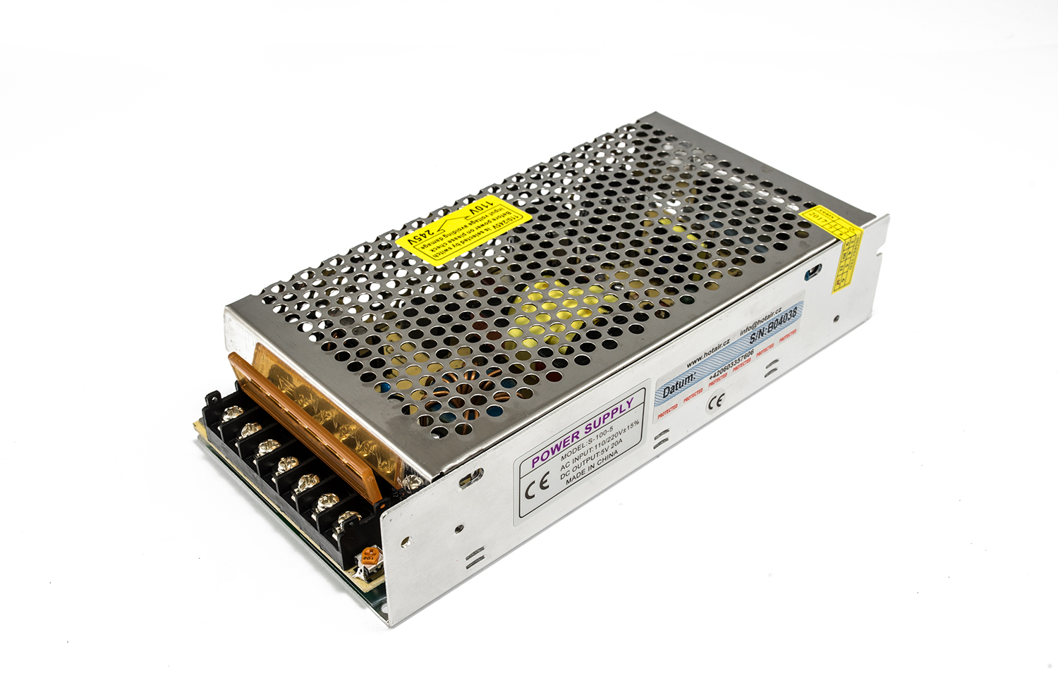 Zasilacz przemysłowy impulsowy S-100-5 AC 110/220V +- 15% DC 5V 20A przeznaczony do zabudowy lub w szafach rozdzielczych do zasilania mniej i średnio wymagających aplikacji. Zasilacz ten ma konstrukcję przemysłową, kontynuacja tekstu